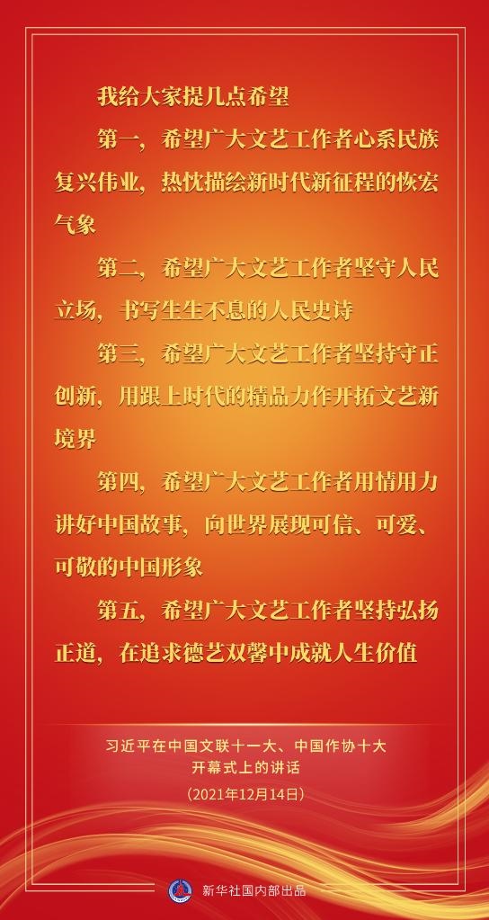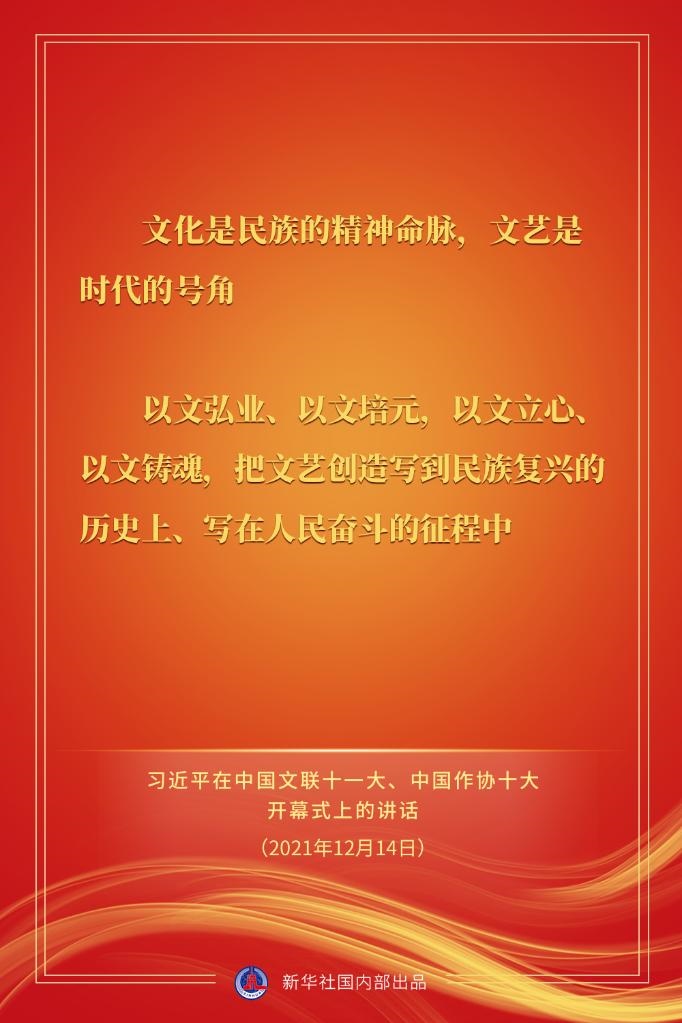 中國(guó)文學(xué)藝術(shù)界聯(lián)合會(huì)第十一次全國(guó)代表大會(huì)、中國(guó)作家協(xié)會(huì)第十次全國(guó)代表大會(huì)14日上午在北京人民大會(huì)堂開(kāi)幕。習(xí)近平出席大會(huì)并發(fā)表重要講話(huà)。戳金句,看要點(diǎn)。