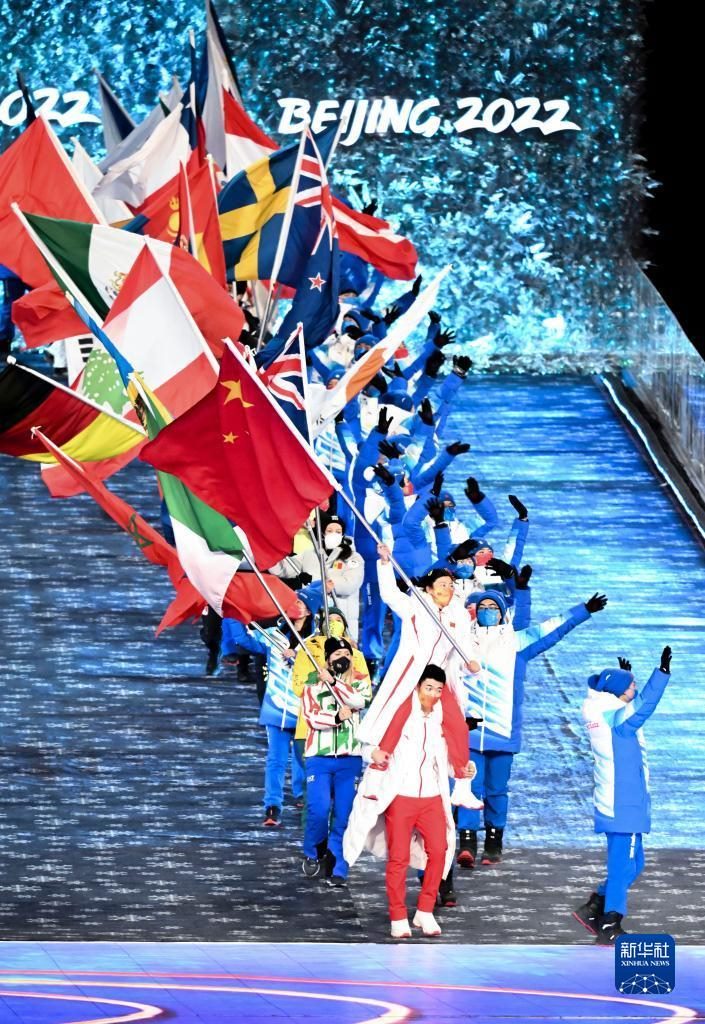 這是中國(guó)代表團(tuán)成員在閉幕式上入場(chǎng)。