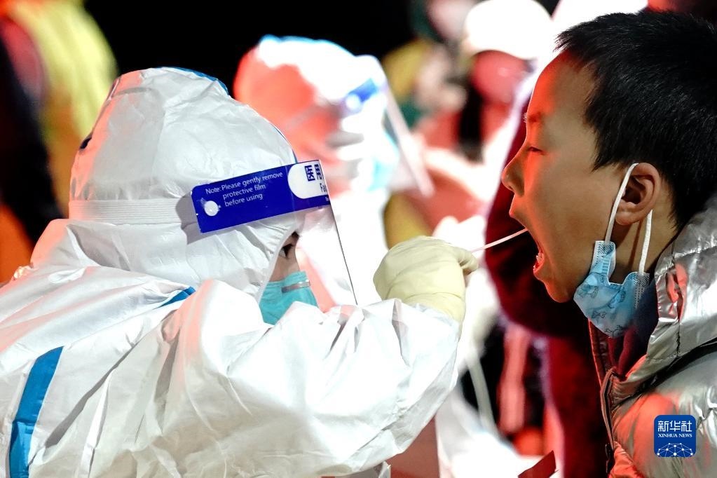 3月13日,在深圳羅湖區(qū)向西村核酸檢測點(diǎn),醫(yī)務(wù)人員為居民進(jìn)行核酸采樣。新華社發(fā)(儲焱攝)