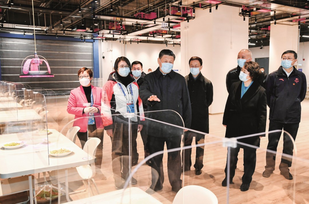 2022年1月4日,中共中央總書記、國(guó)家主席、中央軍委主席習(xí)近平在北京考察2022年冬奧會(huì)、冬殘奧會(huì)籌辦備賽工作。圖為1月4日上午,習(xí)近平在北京冬奧會(huì)、冬殘奧會(huì)主媒體中心智慧餐廳,察看智能餐飲設(shè)備運(yùn)行情況。圖/新華社記者