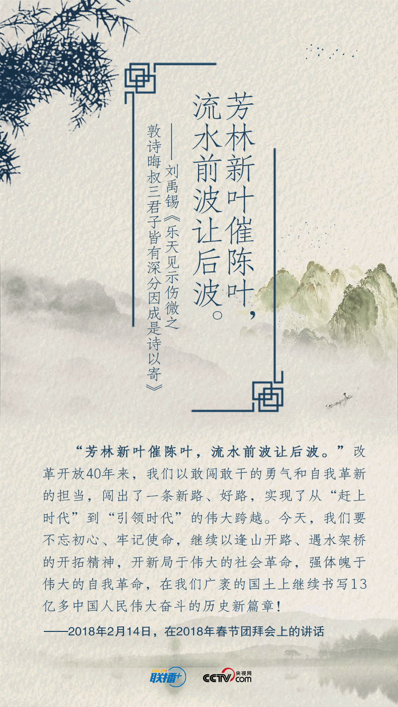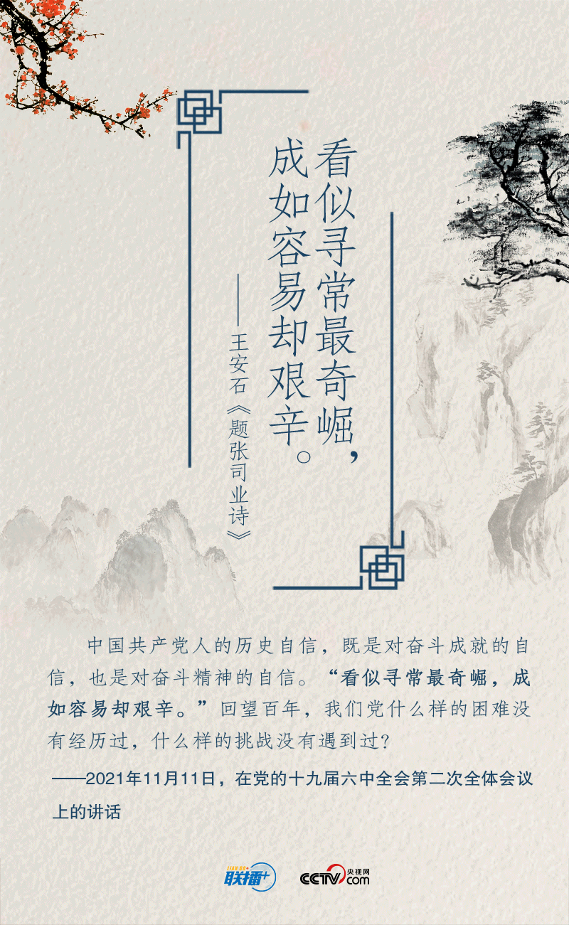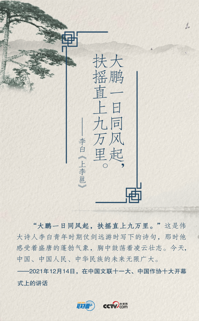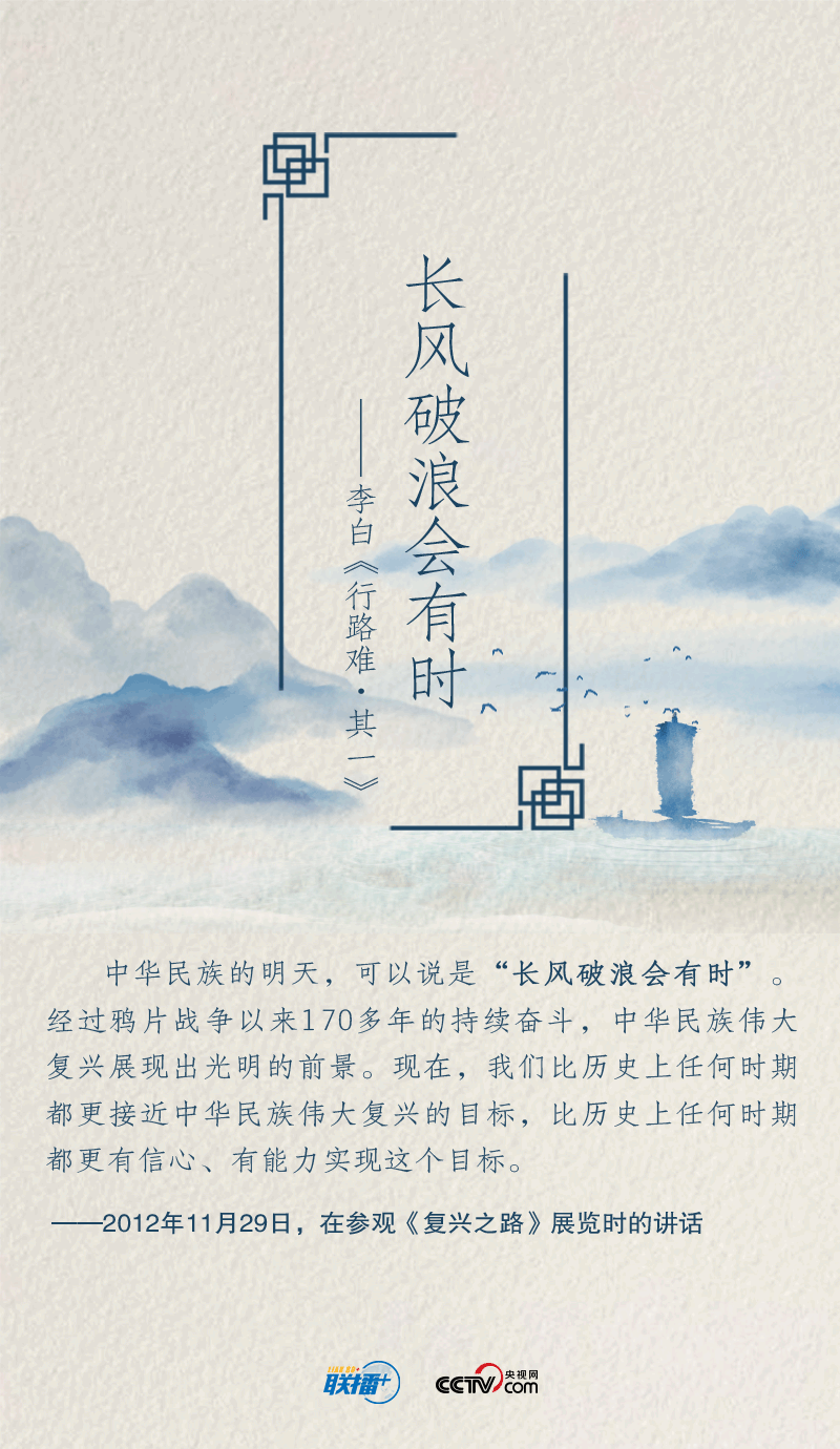 黨的十八大以來,在實現(xiàn)中華民族偉大復興中國夢的征途中,習近平總書記就“奮斗”作出一系列重要論述。以“長風破浪會有時”展望中華民族的明天,用“不畏浮云遮望眼”號召中華兒女擼起袖子加油干……總書記多次精妙運用經(jīng)典詩詞,凝聚新時代奮斗力量。央視網(wǎng)《聯(lián)播+》特進行梳理,與您一起領悟總書記的“奮斗觀”,讓我們在新征程中共同奮斗。