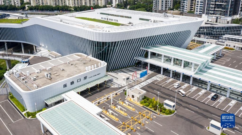 這是蓮塘/香園圍口岸(2020年8月26日攝,無人機(jī)照片)。該口岸是深港間第七座陸路口岸。新華社記者 毛思倩 攝