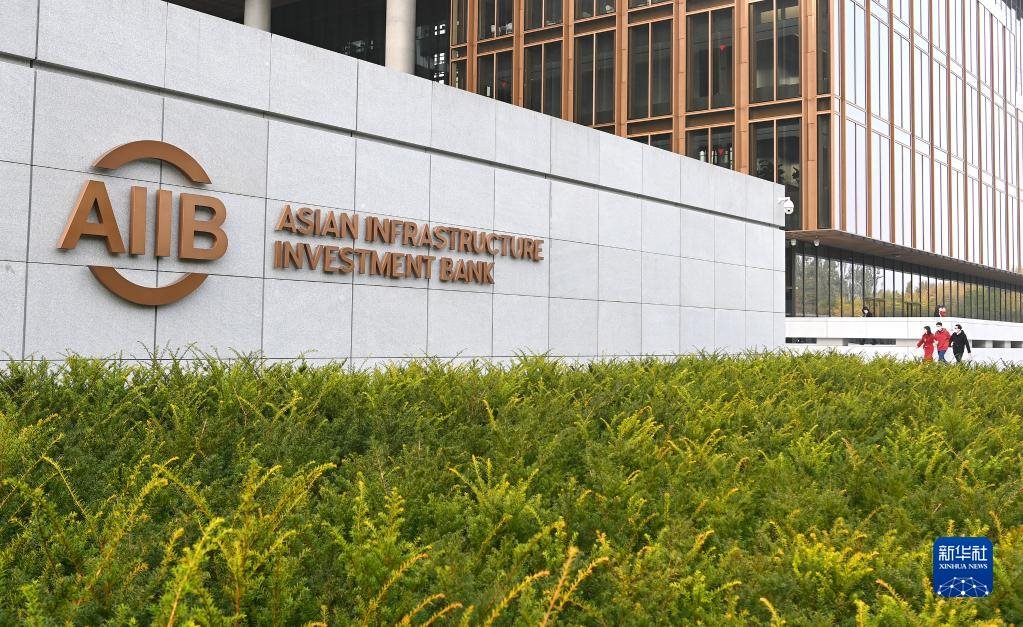 這是亞洲基礎(chǔ)設(shè)施投資銀行(亞投行)標(biāo)志(2021年10月25日攝)。新華社記者 李賀 攝