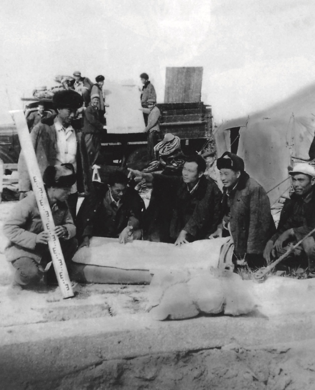 20世紀(jì)60年代,焦裕祿(前中)在蘭考沙區(qū)現(xiàn)場組織抗災(zāi)。(新華社發(fā))