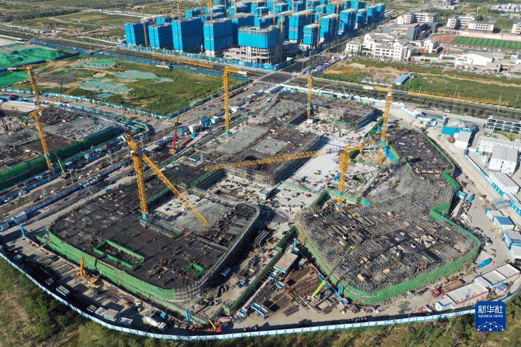 位于雄安新區(qū)啟動區(qū)的中國星網(wǎng)雄安新區(qū)總部大樓建設施工現(xiàn)場(2022年9月7日攝,無人機照片)。新華社記者 朱旭東 攝