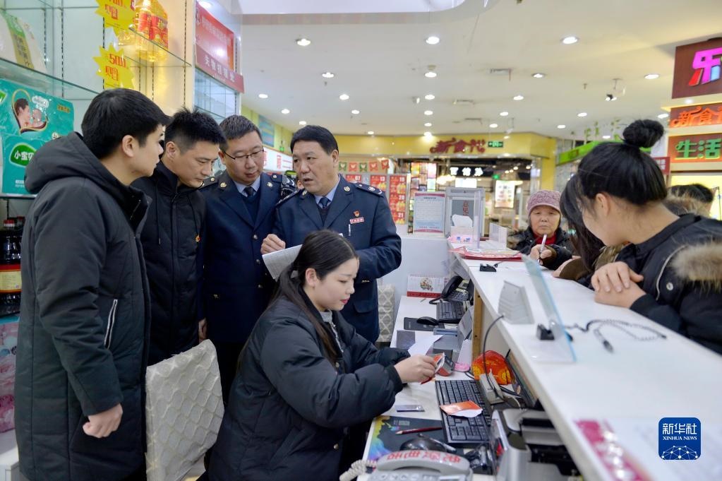 河北寧晉縣紀(jì)檢干部與稅務(wù)稽查人員在當(dāng)?shù)匾患页袡z查是否有單位公款購買購物卡情況(2018年12月29日攝)。新華社記者 牟宇 攝