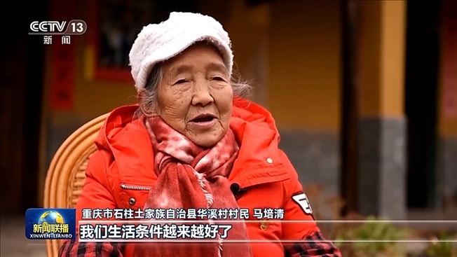 重慶市石柱土家族自治縣華溪村村民 馬培清:我們生活條件越來越好了,不愁吃、不愁穿。我們住的房子也寬敞了,一家大小吃的自來水干干凈凈的?,F(xiàn)在我們的生活條件發(fā)生的變化是習總書記給我們帶來的,非常高興。