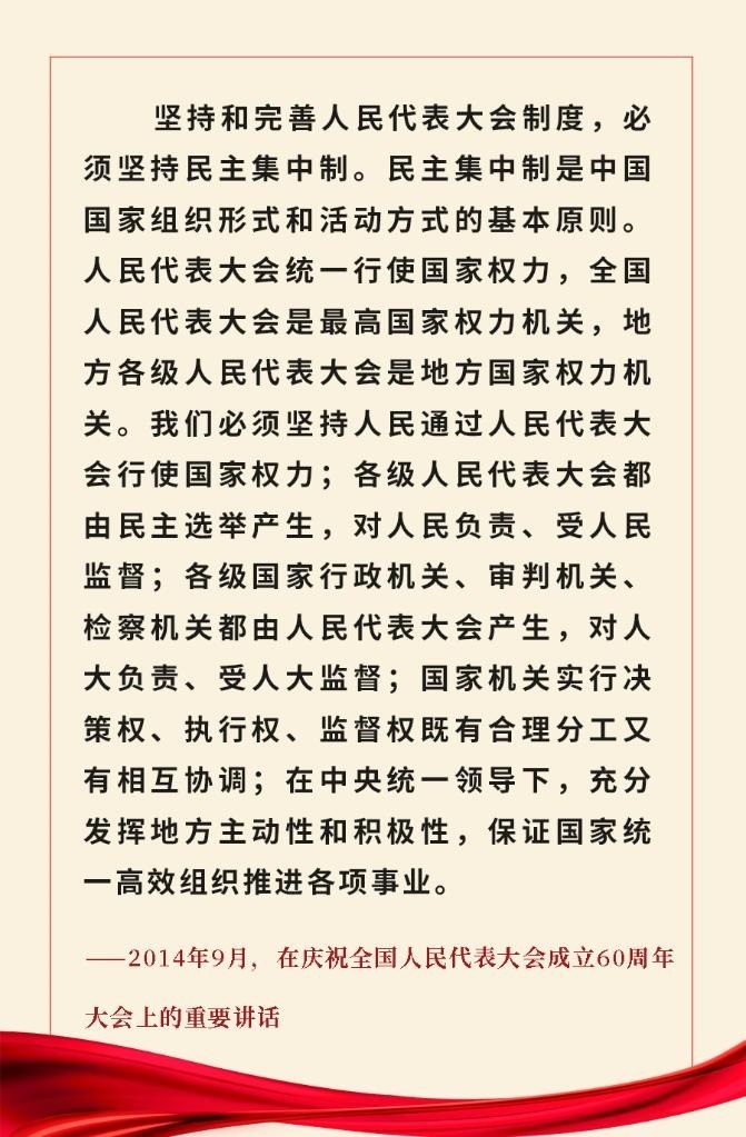 黨的十八大以來(lái),習(xí)近平總書記就堅(jiān)持和完善人民代表大會(huì)制度、堅(jiān)持和完善中國(guó)共產(chǎn)黨領(lǐng)導(dǎo)的多黨合作和政治協(xié)商制度作出一系列重要論述。