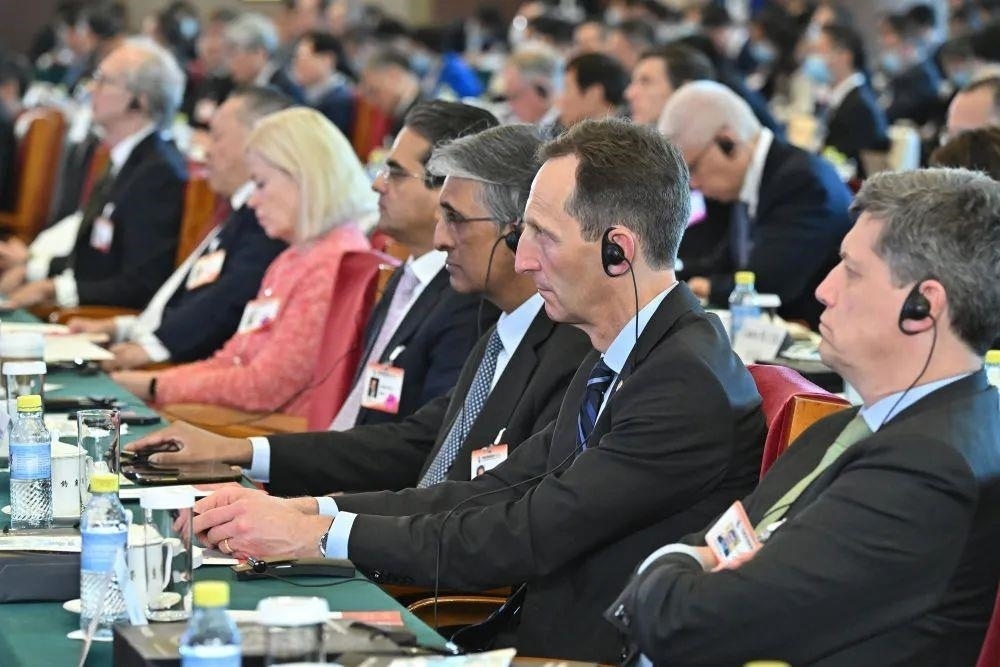 △3月26日,中國發(fā)展高層論壇2023年年會(huì)與會(huì)者聆聽嘉賓發(fā)言。