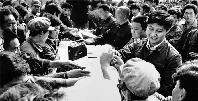 △1983年,時任河北正定縣委書記的習(xí)近平,臨時在大街上擺桌子聽取老百姓意見。