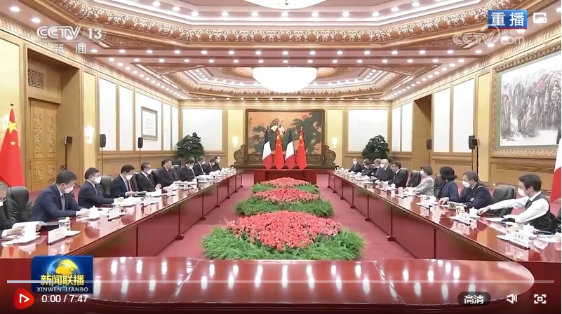 馬克龍表示,我對3年多前訪華情景記憶猶新,非常高興再次訪華,同習(xí)近平主席共同探討進(jìn)一步提升法中全面戰(zhàn)略伙伴關(guān)系。我完全贊同習(xí)近平主席對法中關(guān)系的積極評價以及就發(fā)展雙邊關(guān)系提出的重要建議。明年法中將共同慶祝建交60周年。60年來,法中關(guān)系保持了穩(wěn)定健康發(fā)展。雖然法中兩國發(fā)展模式不同,但雙方相互尊重,坦誠交流,各領(lǐng)域合作實現(xiàn)了互利互惠,同時在合作應(yīng)對當(dāng)今世界面臨的全球性挑戰(zhàn)方面取得重要進(jìn)展。法方尊重并奉行一個中國政策。我此次率龐大代表團(tuán)訪華,就是希望同中方加強(qiáng)合作,促進(jìn)人文交流。法方祝賀中方成功舉辦昆明-蒙特利爾《生物多樣性公約》第十五次締約方大會,希望繼續(xù)在氣候變化、糧食安全等問題上同中方密切溝通合作。中方將舉辦第三屆“一帶一路”國際合作高峰論壇,法方愿同中方就此開展合作。法方贊賞中方始終遵守聯(lián)合國憲章宗旨,為解決國際地區(qū)熱點(diǎn)問題發(fā)揮積極作用,期待同中方密切溝通協(xié)作,努力實現(xiàn)世界的持久和平與穩(wěn)定。
