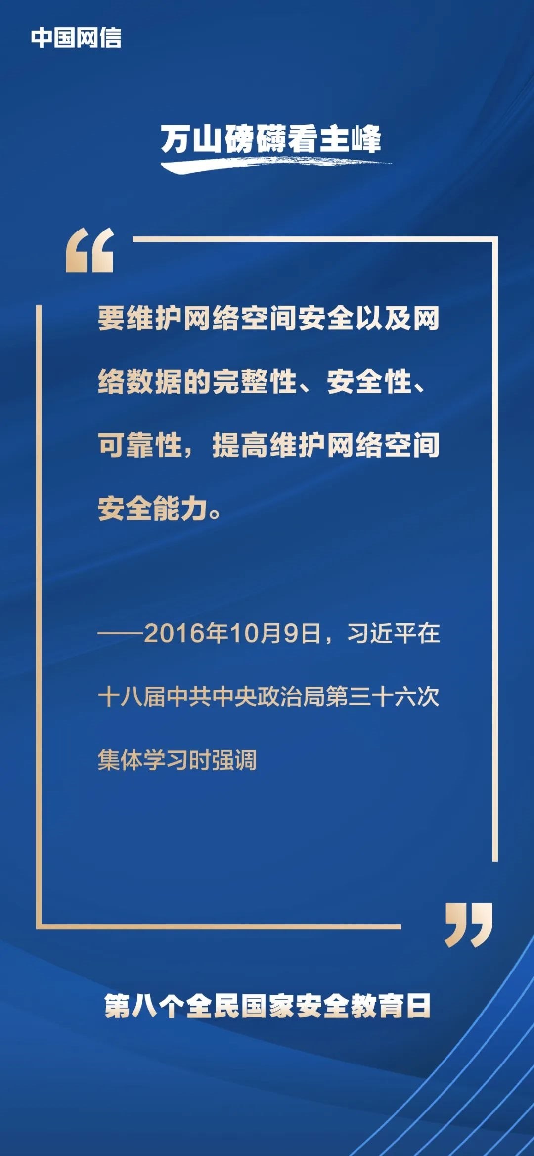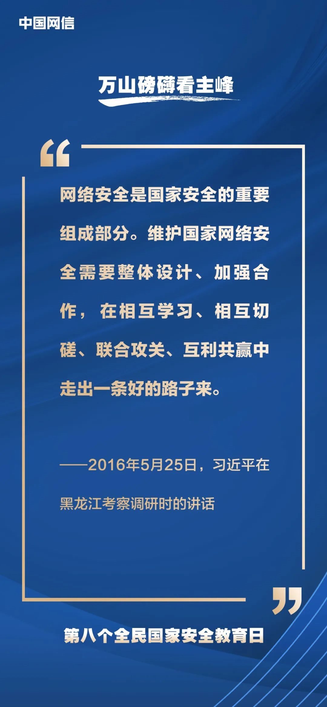 國家安全是安邦定國的重要基石,維護國家安全是全國各族人民根本利益所在。2023年4月15日是第八個全民國家安全教育日,今年的主題是“貫徹總體國家安全觀,增強全民國家安全意識和素養(yǎng),夯實以新安全格局保障新發(fā)展格局的社會基礎”。沒有網(wǎng)絡安全就沒有國家安全,以下摘取習近平總書記關于“網(wǎng)絡安全”的重要論述,與你一起回顧學習。
