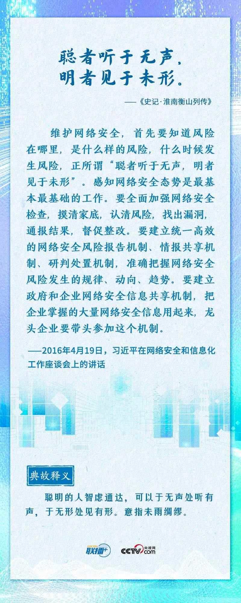值此網(wǎng)絡安全和信息化工作座談會召開七周年之際,央視網(wǎng)《聯(lián)播+》推出海報,邀您一起重溫總書記的經典論述。