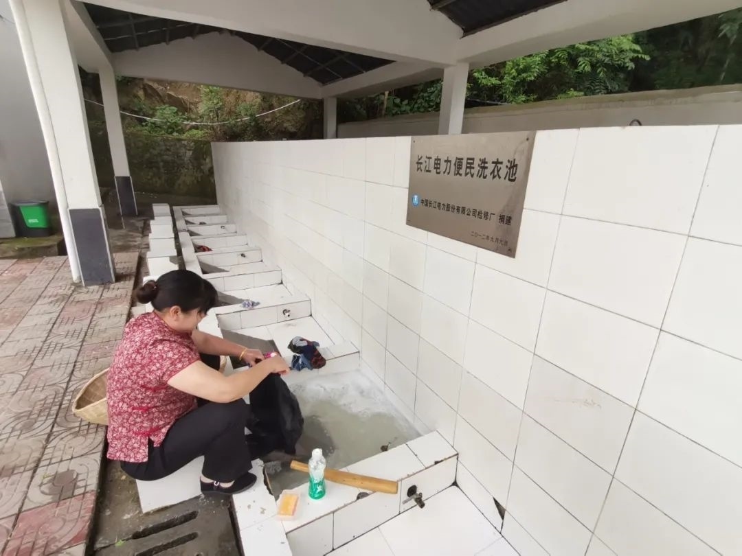 在許家沖村廣場,村民仍然保留著用棒槌洗衣的傳統(tǒng)。過去是在江邊洗衣服,現(xiàn)在是無磷洗衣粉,污水進(jìn)行集中處理,既照顧到村民生活習(xí)慣又環(huán)保。