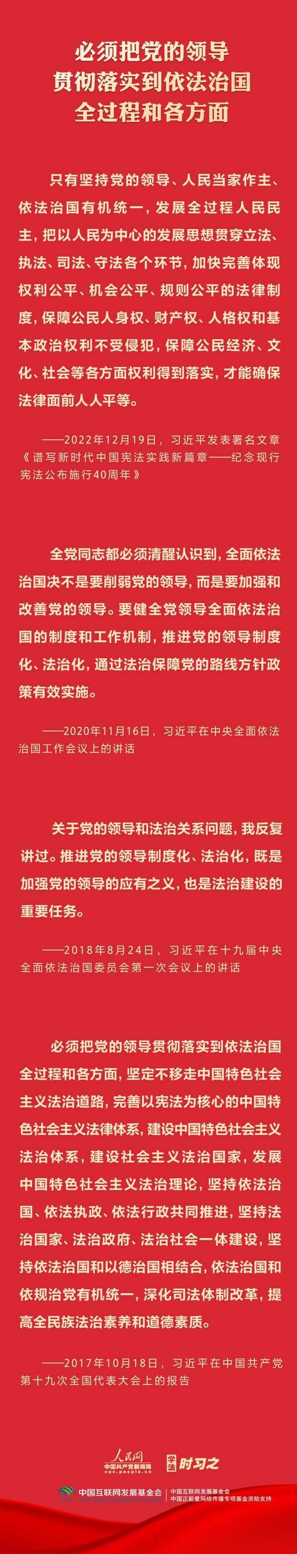 今年是貫徹落實黨的二十大精神的開局之年。中共中央政治局決定從今年4月開始,在全黨自上而下開展學(xué)習(xí)貫徹習(xí)近平新時代中國特色社會主義思想主題教育。習(xí)近平法治思想是習(xí)近平新時代中國特色社會主義思想的重要組成部分,人民網(wǎng)·中國共產(chǎn)黨新聞網(wǎng)推出學(xué)法時習(xí)之·學(xué)習(xí)習(xí)近平法治思想系列策劃,本篇聚焦“堅持黨對全面依法治國的領(lǐng)導(dǎo)”。
