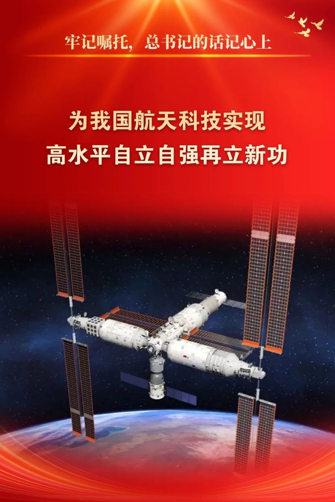 新時代是奮斗者的時代。進(jìn)入新時代,在以習(xí)近平同志為核心的黨中央堅(jiān)強(qiáng)領(lǐng)導(dǎo)下,在習(xí)近平新時代中國特色社會主義思想指引下,中國航天牢記殷切囑托、錨定強(qiáng)國目標(biāo),自信自強(qiáng)、守正創(chuàng)新,取得了以載人航天、探月探火、衛(wèi)星導(dǎo)航為標(biāo)志的重大成果,不斷創(chuàng)造新的歷史,為推動我國進(jìn)入創(chuàng)新型國家行列、加快實(shí)現(xiàn)高水平科技自立自強(qiáng)貢獻(xiàn)了航天智慧、航天方案、航天力量。
