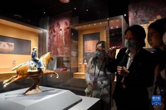 西安博物院,鎮(zhèn)館之寶唐代三彩騰空馬吸引著中外游客頻頻駐足定睛。萬里云山躍馬度。胡人少年高鼻深目,策馬騰空,一路疾馳,追夢(mèng)長安。