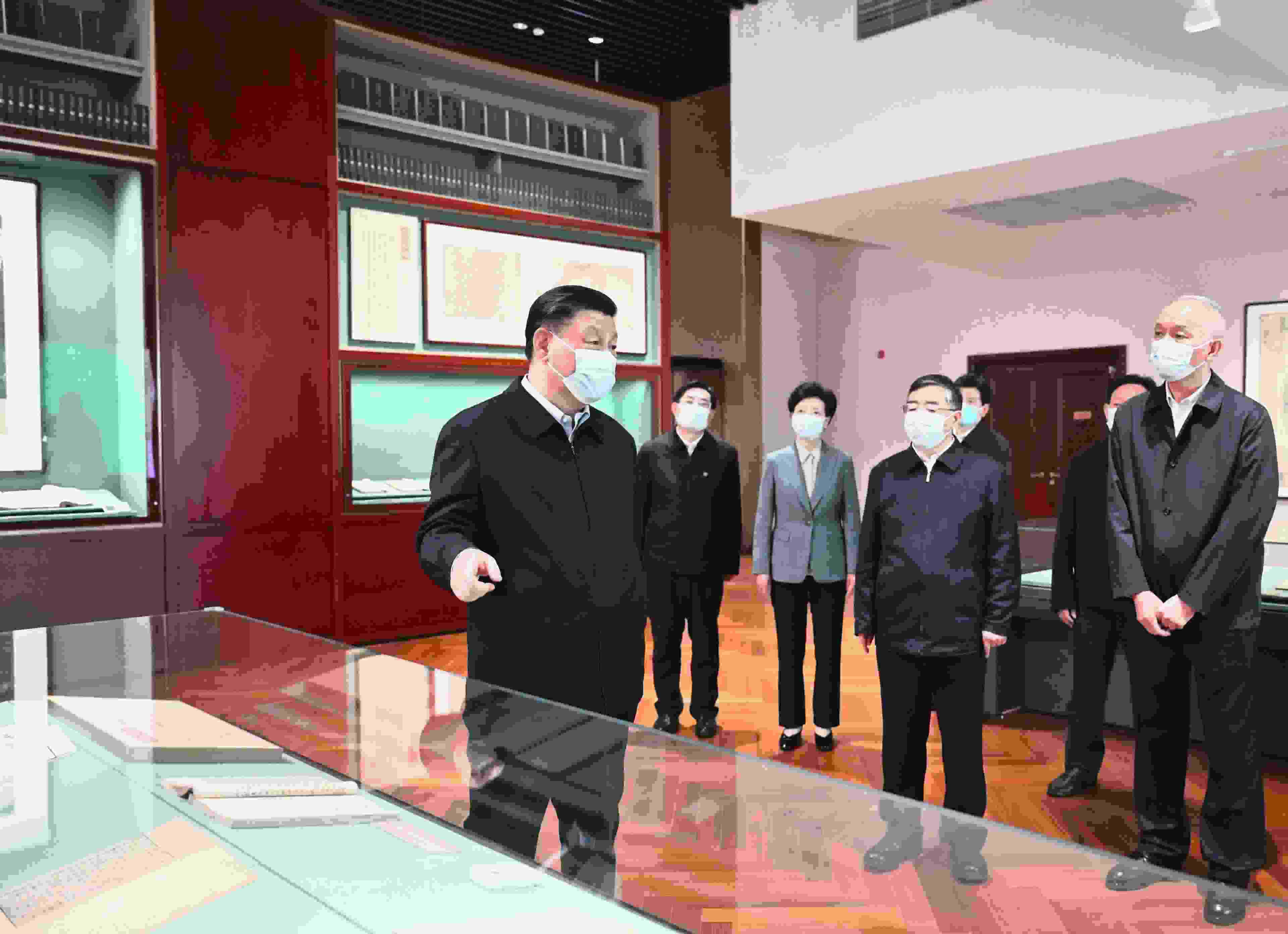 考察當(dāng)天,習(xí)近平總書(shū)記首先走進(jìn)文華堂,聽(tīng)取版本館規(guī)劃建設(shè)有關(guān)情況介紹。