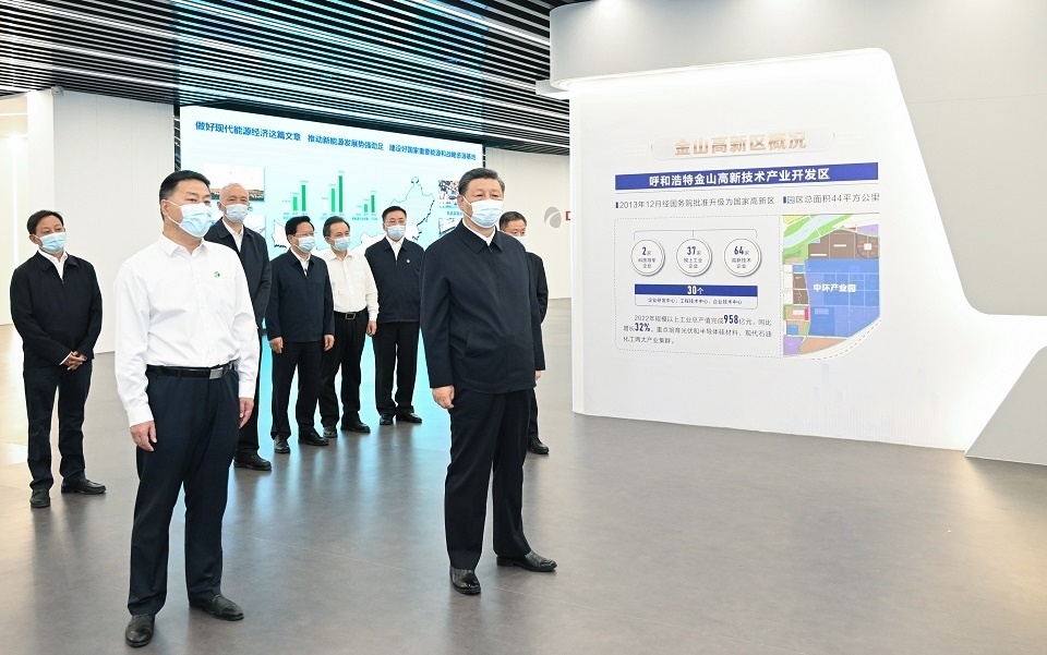 6月7日至8日,中共中央總書記、國家主席、中央軍委主席習(xí)近平在內(nèi)蒙古考察。這是7日下午,習(xí)近平在呼和浩特中環(huán)產(chǎn)業(yè)園考察。