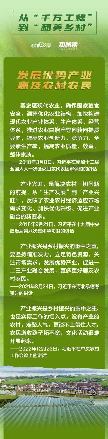 央視網(wǎng)《熱解讀》欄目特別策劃“從‘千萬工程’到‘和美鄉(xiāng)村’”系列解讀文章,緊扣鄉(xiāng)村振興戰(zhàn)略“產(chǎn)業(yè)興旺、生態(tài)宜居、鄉(xiāng)風文明、治理有效、生活富?!笨傄?,全面展現(xiàn)新時代中國多措并舉建設(shè)宜居宜業(yè)和美鄉(xiāng)村的生動實踐。