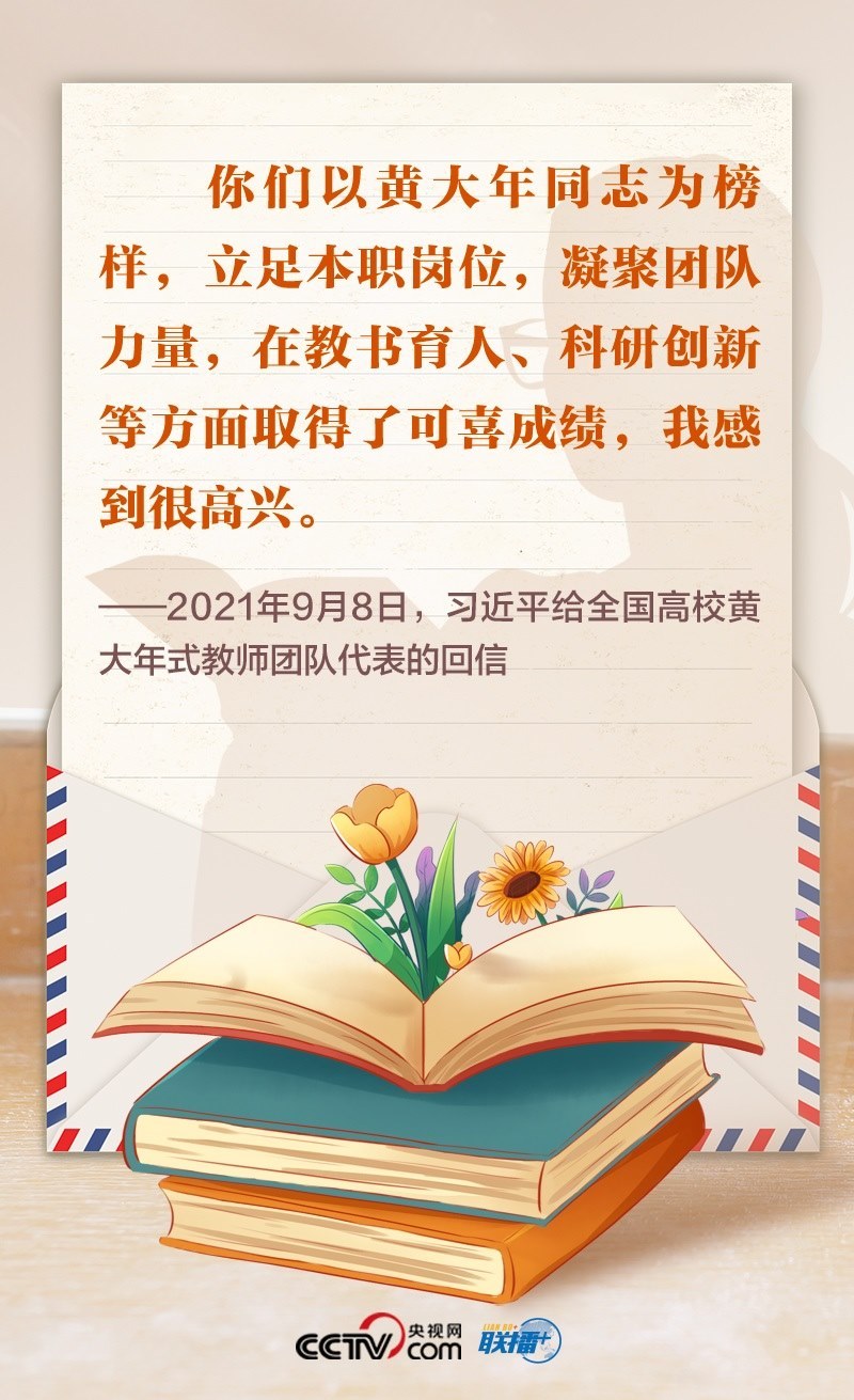 2021年,首批黃大年式教師團(tuán)隊的代表給總書記寫信,匯報教學(xué)、科研等工作情況,表達(dá)了堅守教育報國理想、為民族復(fù)興貢獻(xiàn)力量的決心??倳浕匦趴隙舜蠹业墓ぷ鞒尚?,勉勵大家繼續(xù)學(xué)習(xí)弘揚黃大年同志等優(yōu)秀教師的高尚精神,立德修身,潛心治學(xué),開拓創(chuàng)新,真正把為學(xué)、為事、為人統(tǒng)一起來,當(dāng)好學(xué)生成長的引路人。