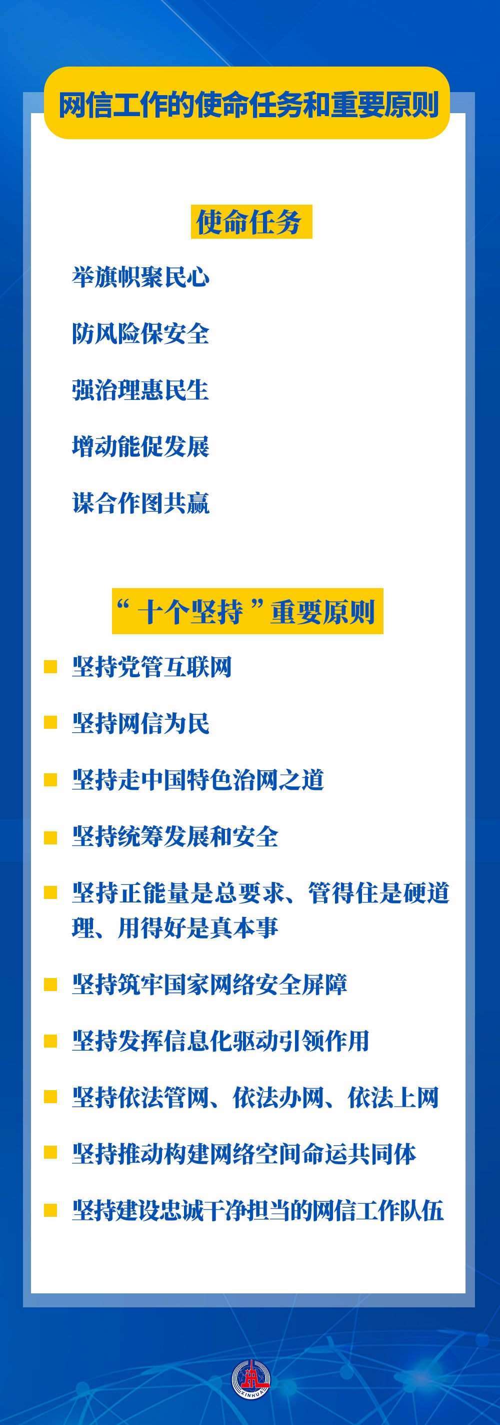 習(xí)近平總書記鮮明提出的網(wǎng)信工作“5個(gè)方面、30個(gè)字”的使命任務(wù),涵蓋互聯(lián)網(wǎng)內(nèi)容建設(shè)、網(wǎng)絡(luò)安全、網(wǎng)絡(luò)惠民、信息化建設(shè)、國際網(wǎng)絡(luò)空間治理等,“十個(gè)堅(jiān)持”重要原則進(jìn)一步豐富和發(fā)展了習(xí)近平總書記關(guān)于網(wǎng)絡(luò)強(qiáng)國的重要思想,把黨對網(wǎng)信工作的規(guī)律性認(rèn)識提升到全新高度。總書記提出的使命任務(wù)和重要原則,具有很強(qiáng)的政治性、戰(zhàn)略性、指導(dǎo)性,既著眼當(dāng)前,又謀深慮遠(yuǎn),為做好新時(shí)代新征程網(wǎng)信工作指明了前進(jìn)方向,為推進(jìn)實(shí)現(xiàn)網(wǎng)絡(luò)強(qiáng)國提供了根本遵循。