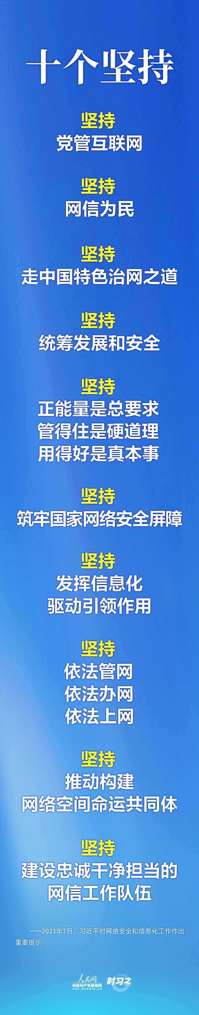 習(xí)近平總書記近日對網(wǎng)絡(luò)安全和信息化工作作出重要指示,鮮明提出網(wǎng)信工作“舉旗幟聚民心、防風險保安全、強治理惠民生、增動能促發(fā)展、謀合作圖共贏”的使命任務(wù),明確“十個堅持”重要原則,并對網(wǎng)信工作提出要求,為新時代新征程網(wǎng)絡(luò)強國建設(shè)提供了行動指南。