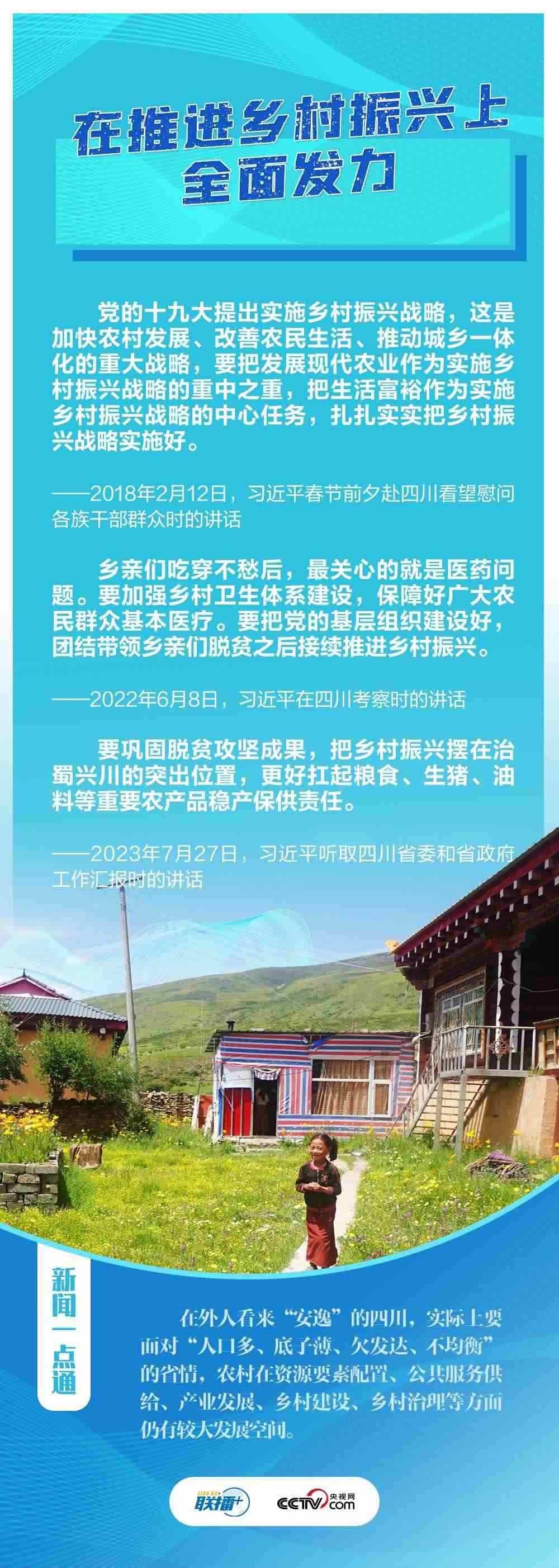 “希望四川在推進科技創(chuàng)新和科技成果轉化上同時發(fā)力,在建設現(xiàn)代化產(chǎn)業(yè)體系上精準發(fā)力,在推進鄉(xiāng)村振興上全面發(fā)力,在筑牢長江黃河上游生態(tài)屏障上持續(xù)發(fā)力?!?月27日,在巴蜀大地考察的習近平總書記聽取四川省委和省政府工作匯報,對四川各項工作提出新寄望。