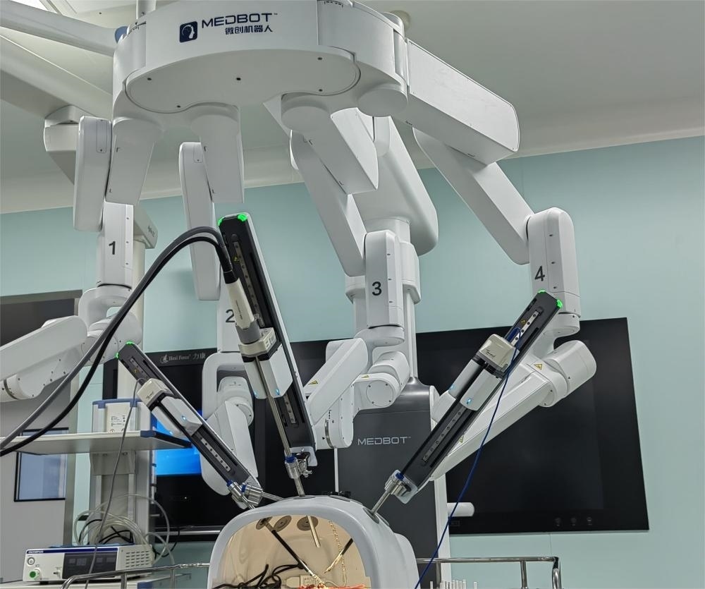 患子宮肌瘤合并貧血的王女士近日在銀川一家醫(yī)院接受了全子宮切除微創(chuàng)手術(shù)。解剖、分離、切割、縫合等各項(xiàng)精細(xì)手術(shù)動(dòng)作都由機(jī)器人的4條機(jī)械臂操作。