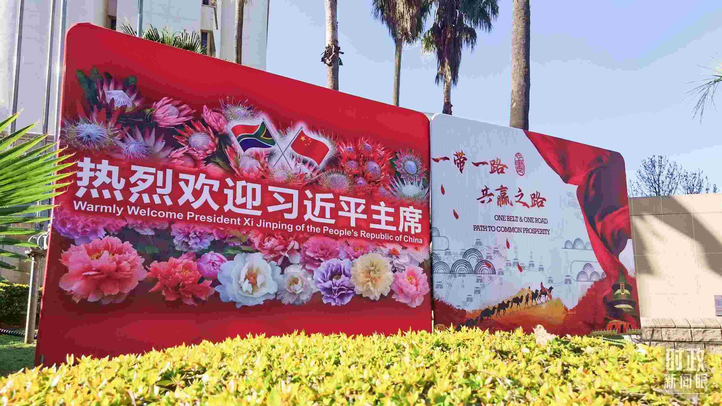 △約翰內(nèi)斯堡街道邊的標(biāo)語牌。(總臺央視記者曹亞星拍攝)