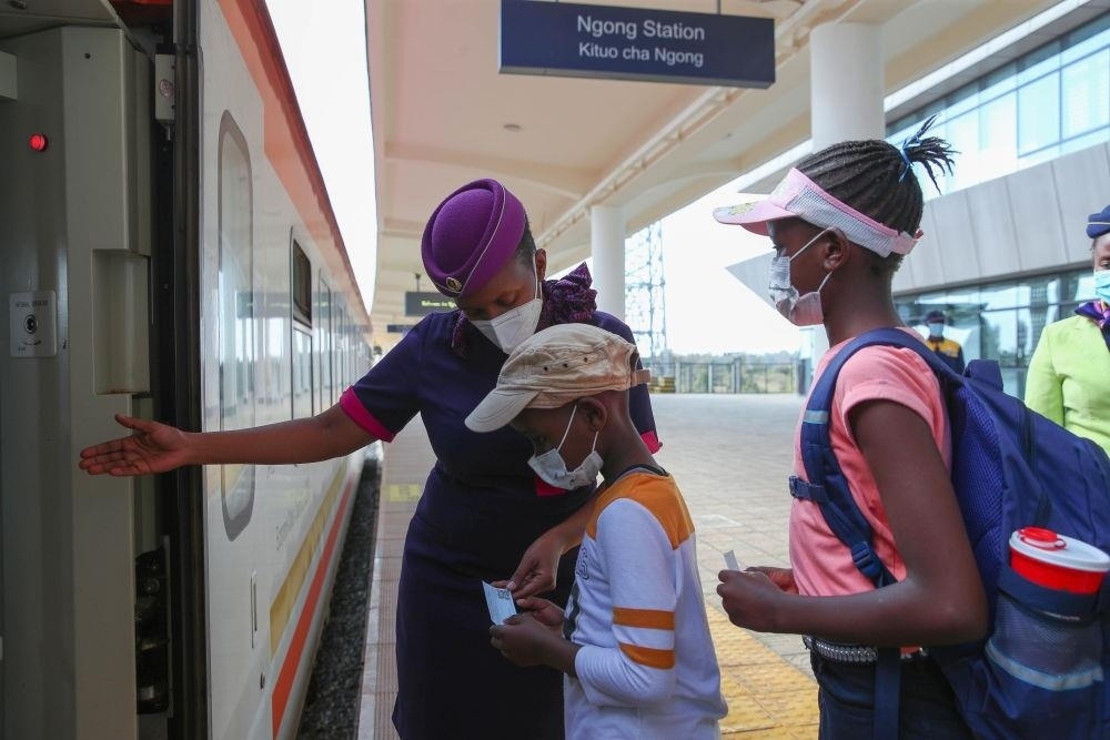 △2022年3月25日,乘客在肯尼亞蒙內(nèi)鐵路恩貢站排隊上車。
