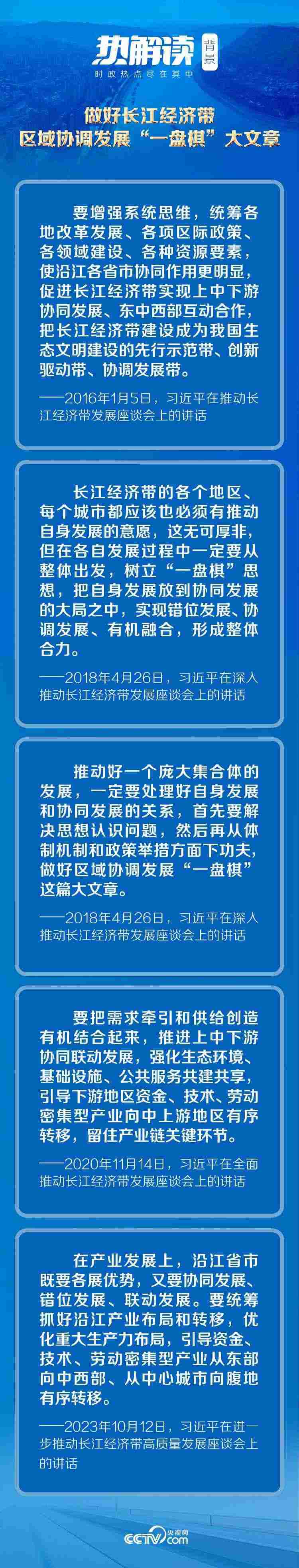 每一次座談,都凝聚著總書記對協(xié)同發(fā)展的深邃思考。八年謀篇,因時而動,循勢而往,為把長江經(jīng)濟(jì)帶建設(shè)成為生態(tài)更優(yōu)美、交通更順暢、經(jīng)濟(jì)更協(xié)調(diào)、市場更統(tǒng)一、機(jī)制更科學(xué)的黃金經(jīng)濟(jì)帶把脈定向。