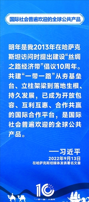 10年前,習(xí)近平主席提出共建“絲綢之路經(jīng)濟(jì)帶”和“21世紀(jì)海上絲綢之路”,即共建“一帶一路”倡議。過去10年來,習(xí)近平主席在多個場合發(fā)表講話和署名文章,為世界描繪了共建“一帶一路”互聯(lián)互通、合作共贏的宏偉藍(lán)圖。