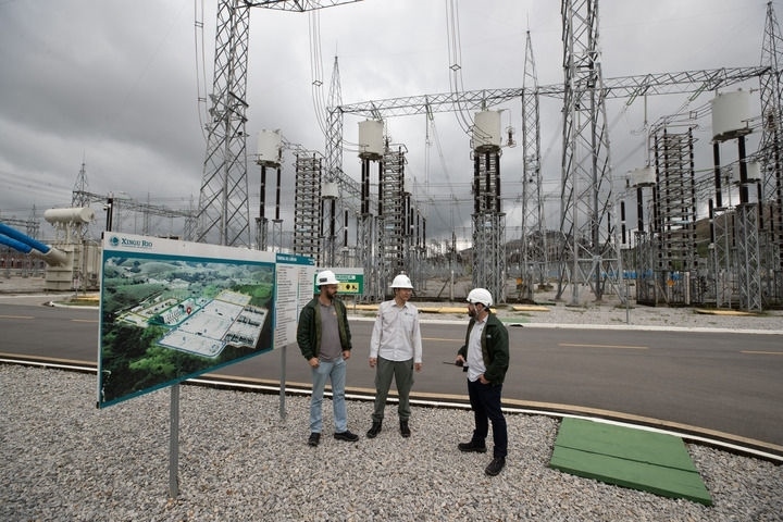 2022年9月30日,在巴西里約熱內(nèi)盧美麗山特高壓輸電二期項(xiàng)目里約換流站,國(guó)網(wǎng)巴控公司換流站運(yùn)維主管(中)和巴方人員交談。新華社記者 王天聰 攝