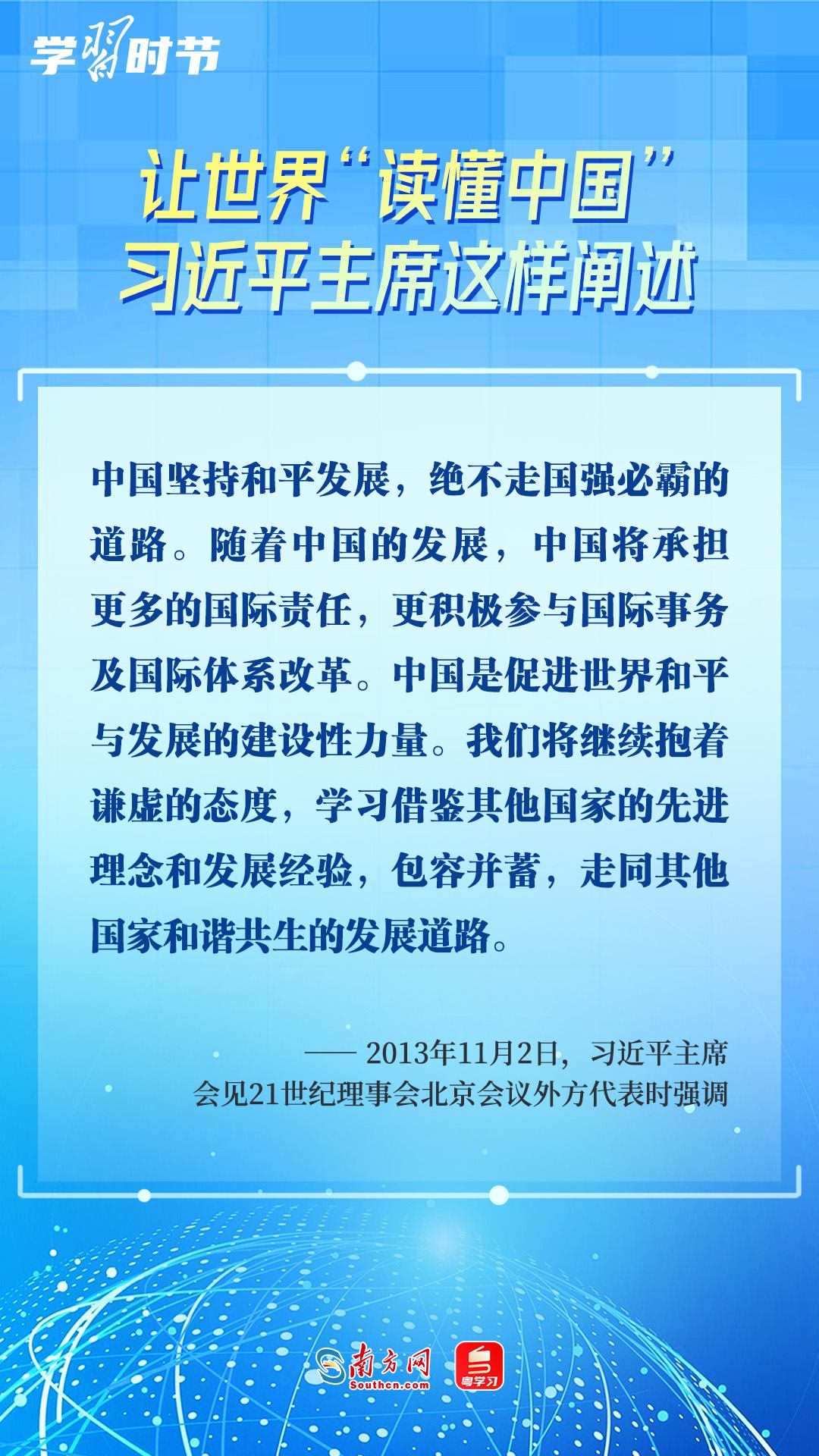 習近平主席高度重視“讀懂中國”國際會議,多次會見與會代表、向會議致辭或致賀信,闡述中國的發(fā)展道路、改革開放、對外政策等,讓我們一同學習。