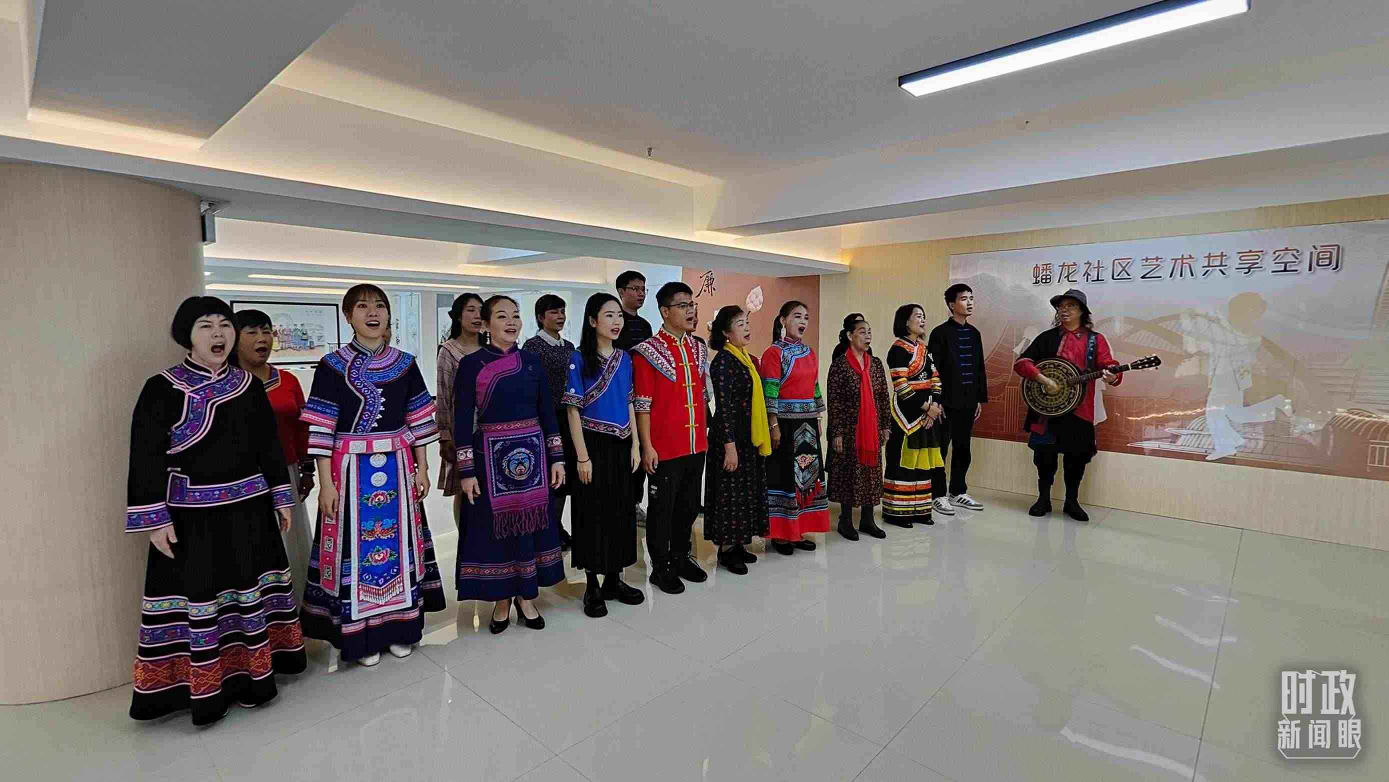△蟠龍社區(qū)居民演唱民族歌曲《幸福嘹嘹啰》。(總臺(tái)央視記者楊立峰拍攝)