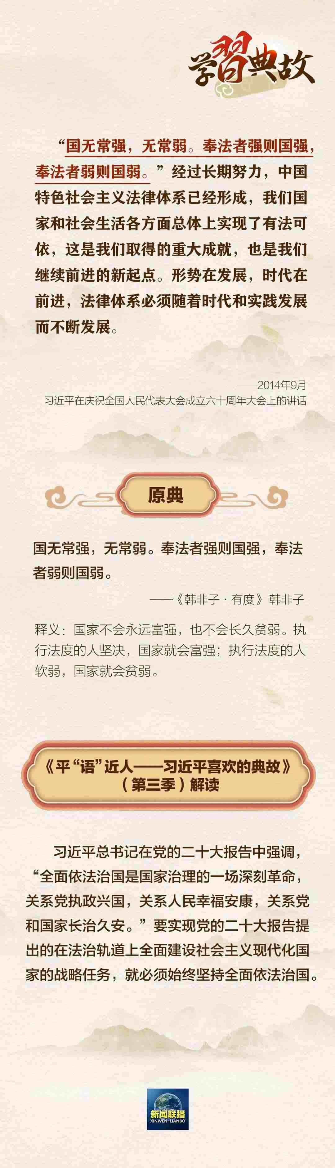 黨的二十大報告將法治建設單獨作為一個部分進行專章論述、專門部署,這充分體現了以習近平同志為核心的黨中央對法治建設的高度重視。圍繞“全面依法治國”這一主題,總書記曾講到哪些典故?一起學習↓↓↓