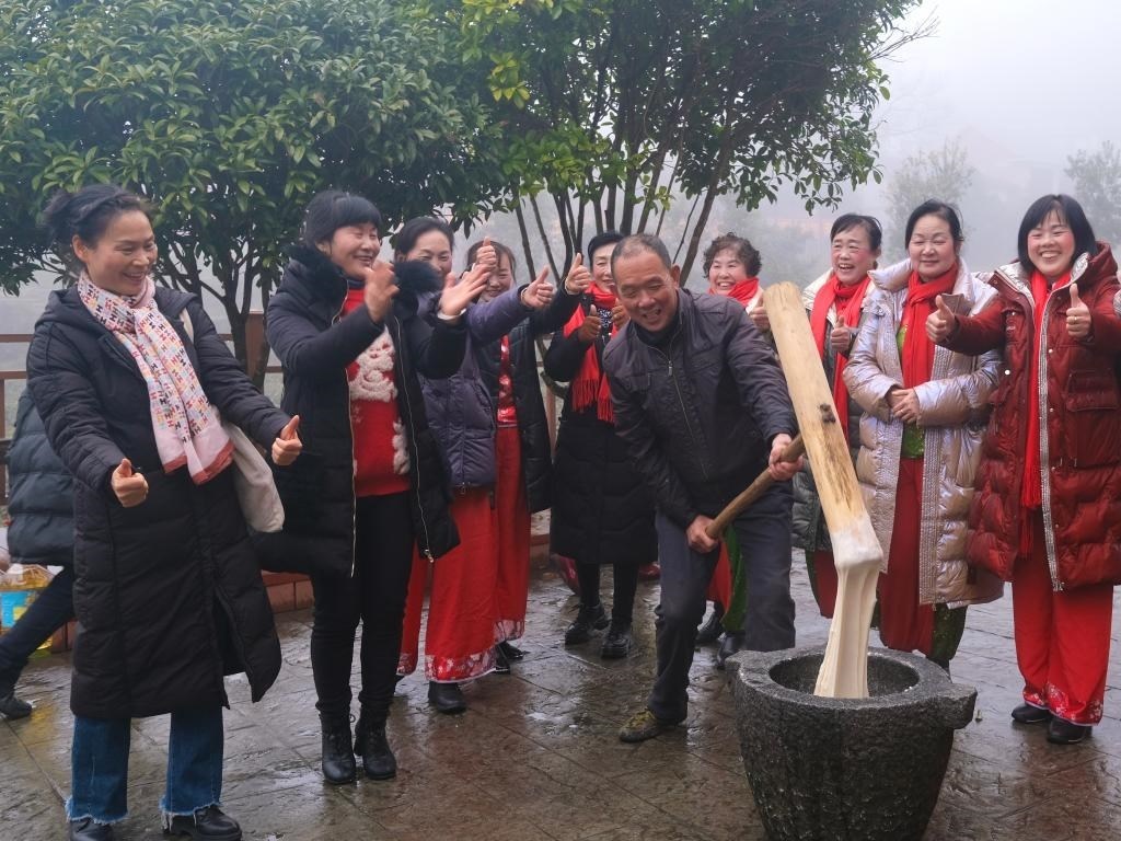 2月2日,神山村群眾一同打糍粑準備迎接南方小年。(受訪者供圖)