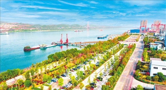 ▲初春時(shí)節(jié),長江邊的興發(fā)集團(tuán)宜昌新材料產(chǎn)業(yè)園綠意盎然