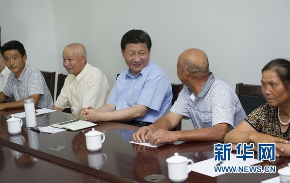 ▲2013年7月21日至23日,中共中央總書記、國家主席、中央軍委主席習(xí)近平在湖北調(diào)研全面深化改革問題和當(dāng)前經(jīng)濟(jì)運(yùn)行情況。 22日下午,習(xí)近平來到鄂州市長港鎮(zhèn)峒山村,了解城鄉(xiāng)一體化建設(shè)情況,同部分村民座談。