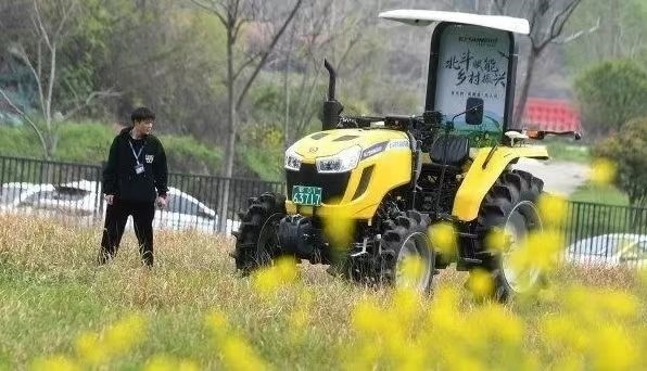 ▲位于光谷北斗大廈的武漢依迅北斗時(shí)空技術(shù)股份有限公司園區(qū)內(nèi),安裝了北斗高精度農(nóng)機(jī)自動駕駛終端的拖拉機(jī)正在進(jìn)行測試