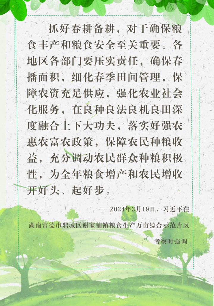 ??3月19日下午,習(xí)近平總書記來到湖南常德市鼎城區(qū)謝家鋪鎮(zhèn)糧食生產(chǎn)萬畝綜合示范片區(qū),走進水稻田邊,察看秧苗培育和土地翻耕情況,并同種糧大戶、農(nóng)技人員、基層干部和村民親切交流,詳細(xì)詢問春耕備耕等情況。 ??“農(nóng)者,天下之本也?!?/p> ??在常德市鼎城區(qū)謝家鋪鎮(zhèn)港中坪村,農(nóng)民搶抓農(nóng)時,整備農(nóng)機、備足農(nóng)資,開展春耕生產(chǎn),播種豐收的希望。 ??3月19日,在港中坪村,村民駕駛農(nóng)機翻耕田地(無人機照片)。 ??3月19日,在港中坪村,村民駕駛農(nóng)機翻耕田地(無人機照片)。 ??3月19日,在港中坪村,村民駕駛農(nóng)機翻耕田地。 ??3月19日,在港中坪村,村民駕駛農(nóng)機翻耕田地。 ??3月19日,在港中坪村,村民駕駛農(nóng)機翻耕田地。 ??3月19日,在港中坪村,村民在疏通田間的水渠。 ??3月19日,在港中坪村,村民駕駛農(nóng)機翻耕田地。 ??監(jiān)制:郭建業(yè) ??策劃:賴向東 ??統(tǒng)籌:畢曉洋 徐亮 ??編輯:侯俊 李琰 張曼怡 杜瀟逸 ??攝影:鞠鵬 謝環(huán)馳 王曄 燕雁 薛宇舸 陳思汗 盧燁 ??新華社攝影部、湖南分社聯(lián)合制作 ??新華社第一工作室出品