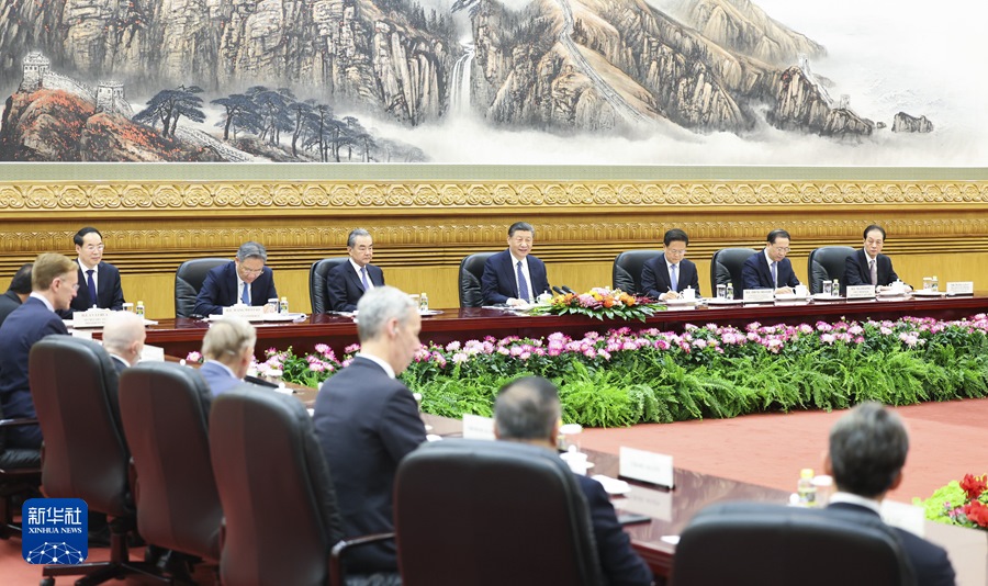??美中關(guān)系全國(guó)委員會(huì)董事會(huì)主席格林伯格、黑石集團(tuán)董事長(zhǎng)兼首席執(zhí)行官蘇世民、高通公司總裁兼首席執(zhí)行官安蒙、哈佛大學(xué)肯尼迪政府學(xué)院創(chuàng)始院長(zhǎng)艾利森、美中貿(mào)易全國(guó)委員會(huì)會(huì)長(zhǎng)艾倫等美方代表在發(fā)言中感謝習(xí)近平主席撥冗會(huì)見。他們表示,過去幾十年來,中國(guó)實(shí)現(xiàn)了非凡經(jīng)濟(jì)增長(zhǎng)和轉(zhuǎn)型,體現(xiàn)了強(qiáng)大韌性和活力。在習(xí)近平主席卓越領(lǐng)導(dǎo)下,中國(guó)致力于發(fā)展新質(zhì)生產(chǎn)力,實(shí)現(xiàn)更可持續(xù)的高質(zhì)量發(fā)展。中國(guó)人民的發(fā)展權(quán)利應(yīng)該得到尊重。相信中國(guó)將實(shí)現(xiàn)自身發(fā)展目標(biāo),促進(jìn)世界經(jīng)濟(jì)發(fā)展和融合。一個(gè)強(qiáng)大、繁榮的中國(guó)是世界的正能量。美中經(jīng)濟(jì)關(guān)系緊密依存,兩國(guó)唯有和平共處,才能實(shí)現(xiàn)各自發(fā)展繁榮?!靶尬舻椎孪葳濉辈⒎潜厝弧C绹?guó)企業(yè)贊賞中方近期出臺(tái)的一系列進(jìn)一步改革開放的重要舉措,看好中國(guó)經(jīng)濟(jì)發(fā)展前景,將堅(jiān)定不移繼續(xù)深耕中國(guó),同中國(guó)發(fā)展長(zhǎng)期緊密的合作關(guān)系。習(xí)近平主席同拜登總統(tǒng)去年11月在舊金山成功會(huì)晤,提振了美國(guó)各界和世界對(duì)美中關(guān)系未來的預(yù)期和信心。美國(guó)工商界和戰(zhàn)略學(xué)術(shù)界支持美中雙方加強(qiáng)各層級(jí)交往交流,增進(jìn)相互理解、信任與合作,攜手應(yīng)對(duì)全球性挑戰(zhàn),推動(dòng)建立穩(wěn)定、可持續(xù)、富有成效的美中關(guān)系。