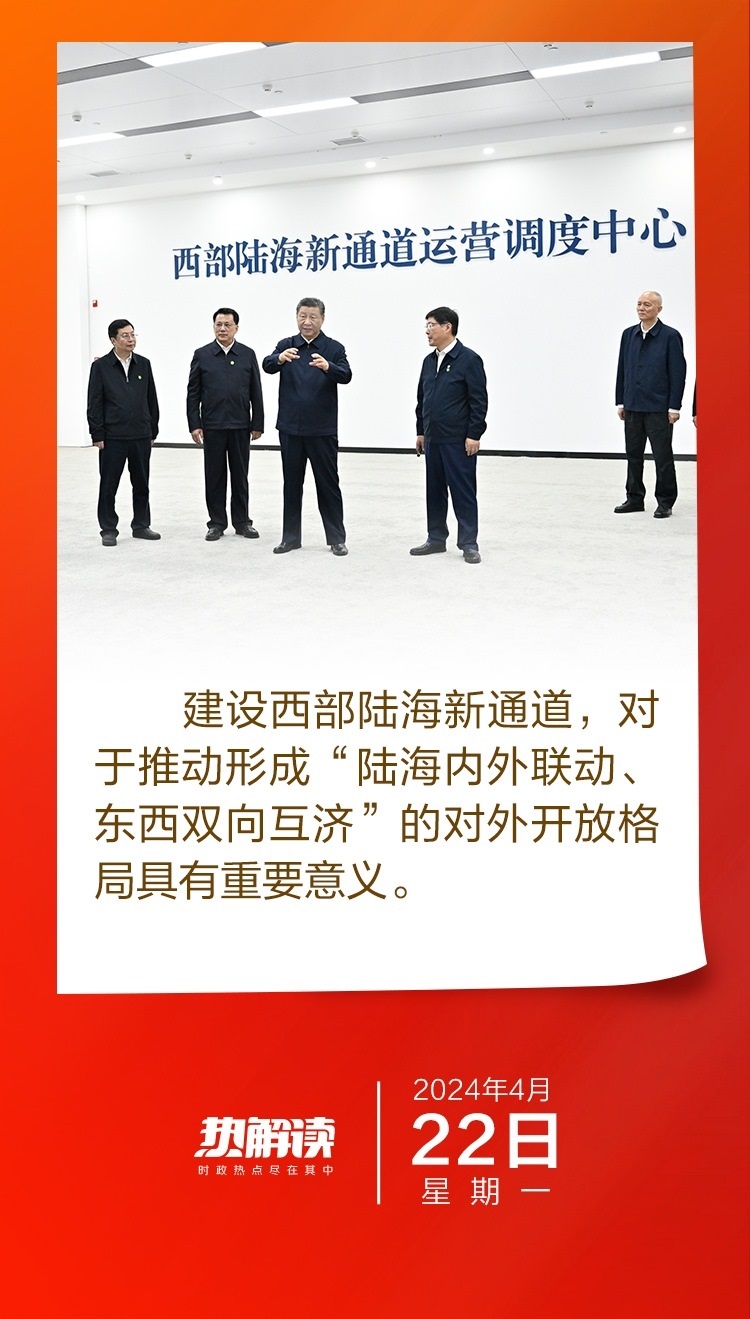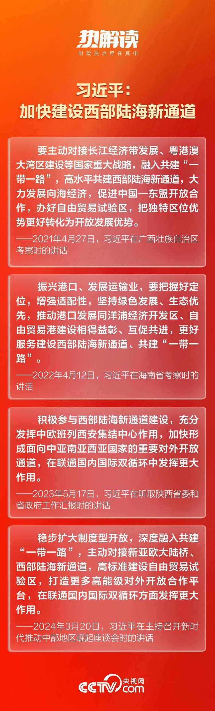 總書(shū)記一直對(duì)這條通道的建設(shè)十分關(guān)切。近年來(lái),總書(shū)記在貴州、陜西、廣西等西部陸海新通道沿線省區(qū)考察時(shí),多次對(duì)高水平共建西部陸海新通道作出重要指示。