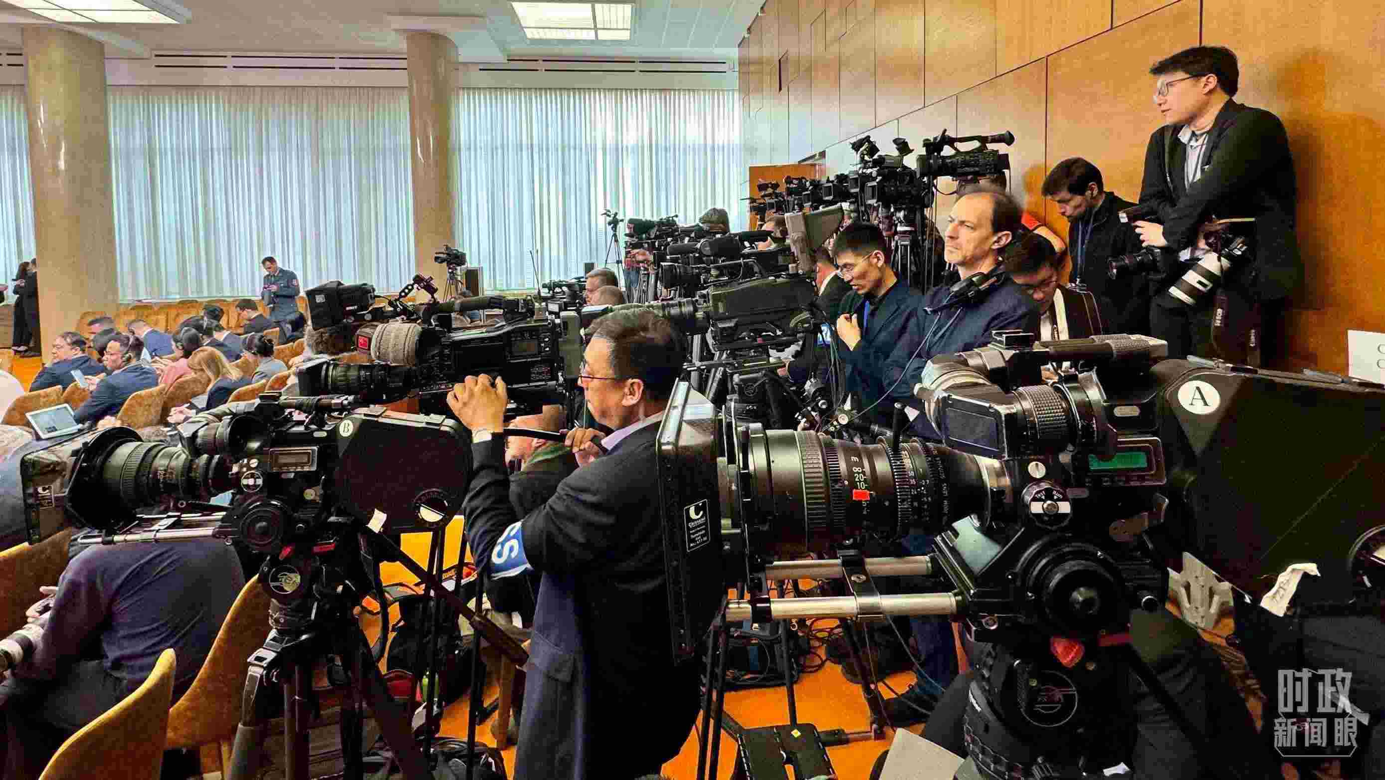 △這是中塞兩國元首共見記者開始前的現(xiàn)場,記者云集。(總臺(tái)央視記者李增仁拍攝)