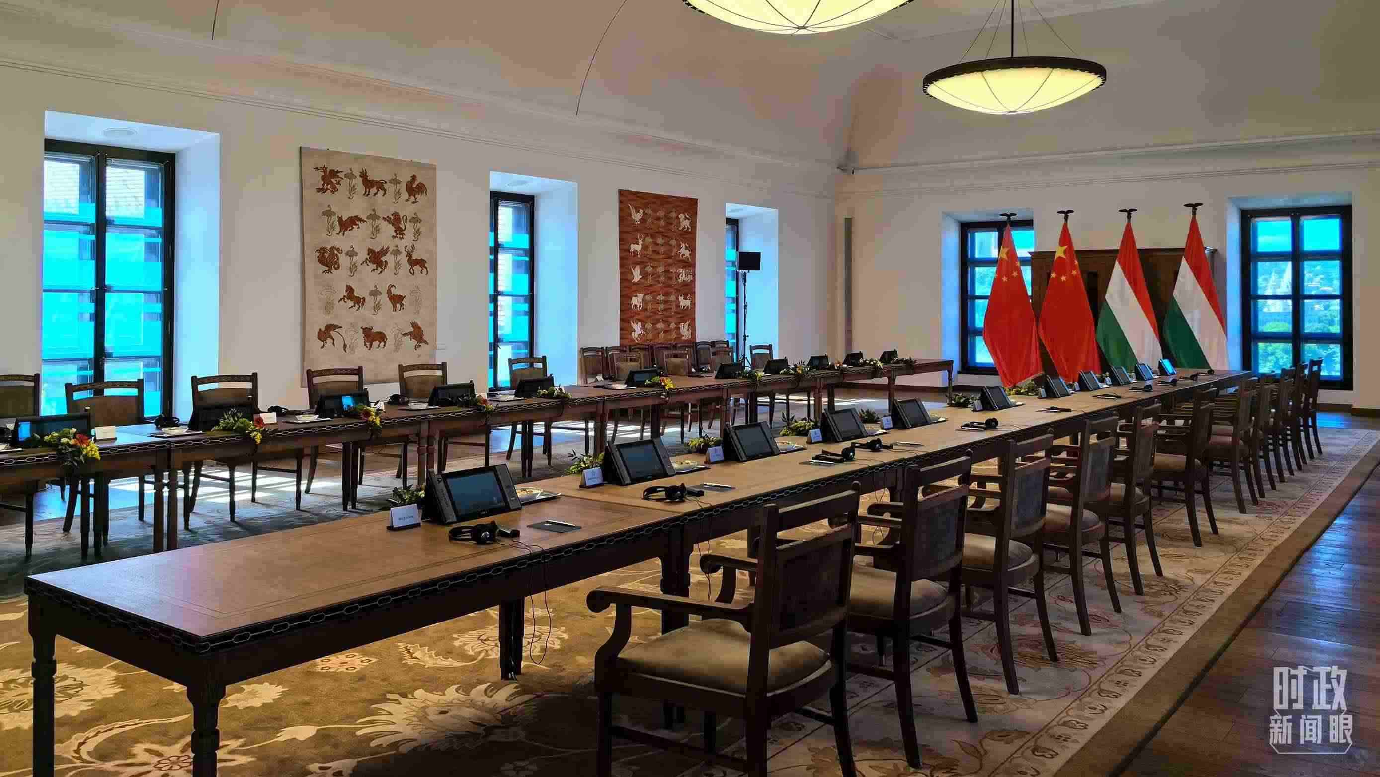 △5月9日,習(xí)主席同匈牙利總理歐爾班在這里舉行會(huì)談。這是會(huì)談開始前的現(xiàn)場。(總臺(tái)央視記者陸泓宇拍攝)