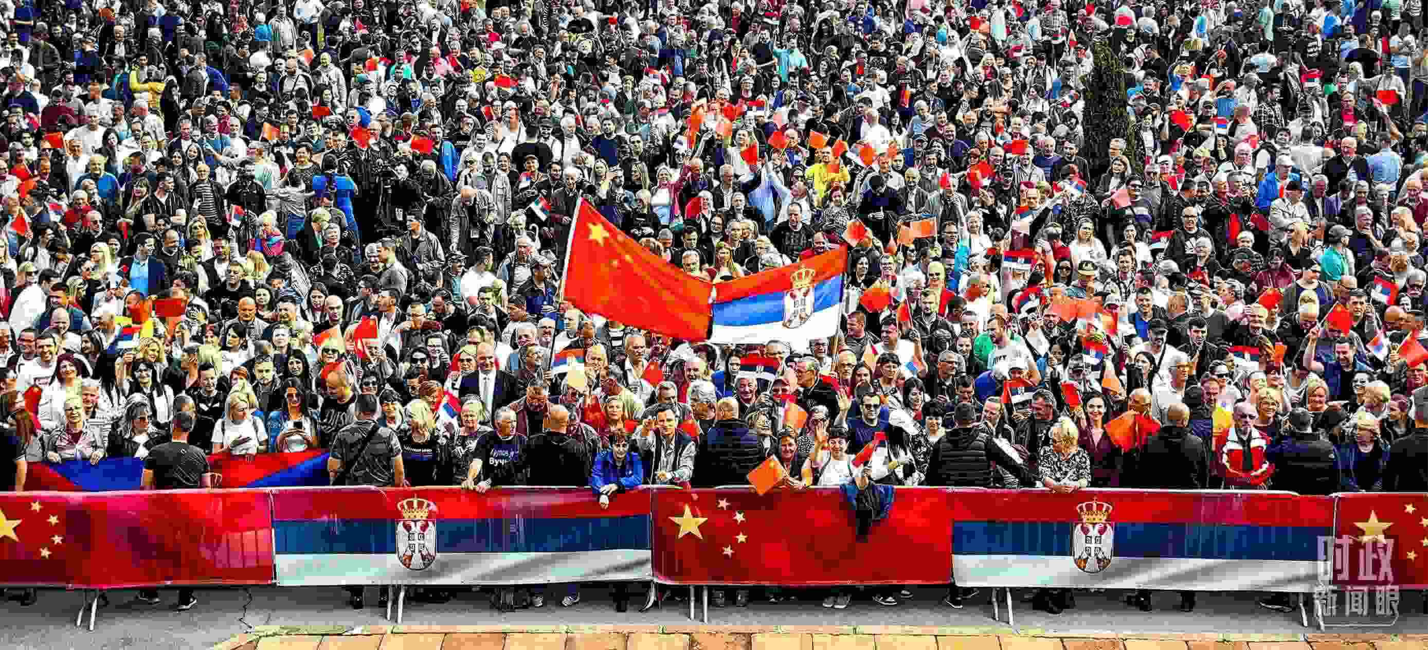 △一萬五千名塞爾維亞民眾齊聚塞爾維亞大廈廣場,熱烈歡迎習(xí)主席到訪。(總臺(tái)央視記者段德文拍攝)
