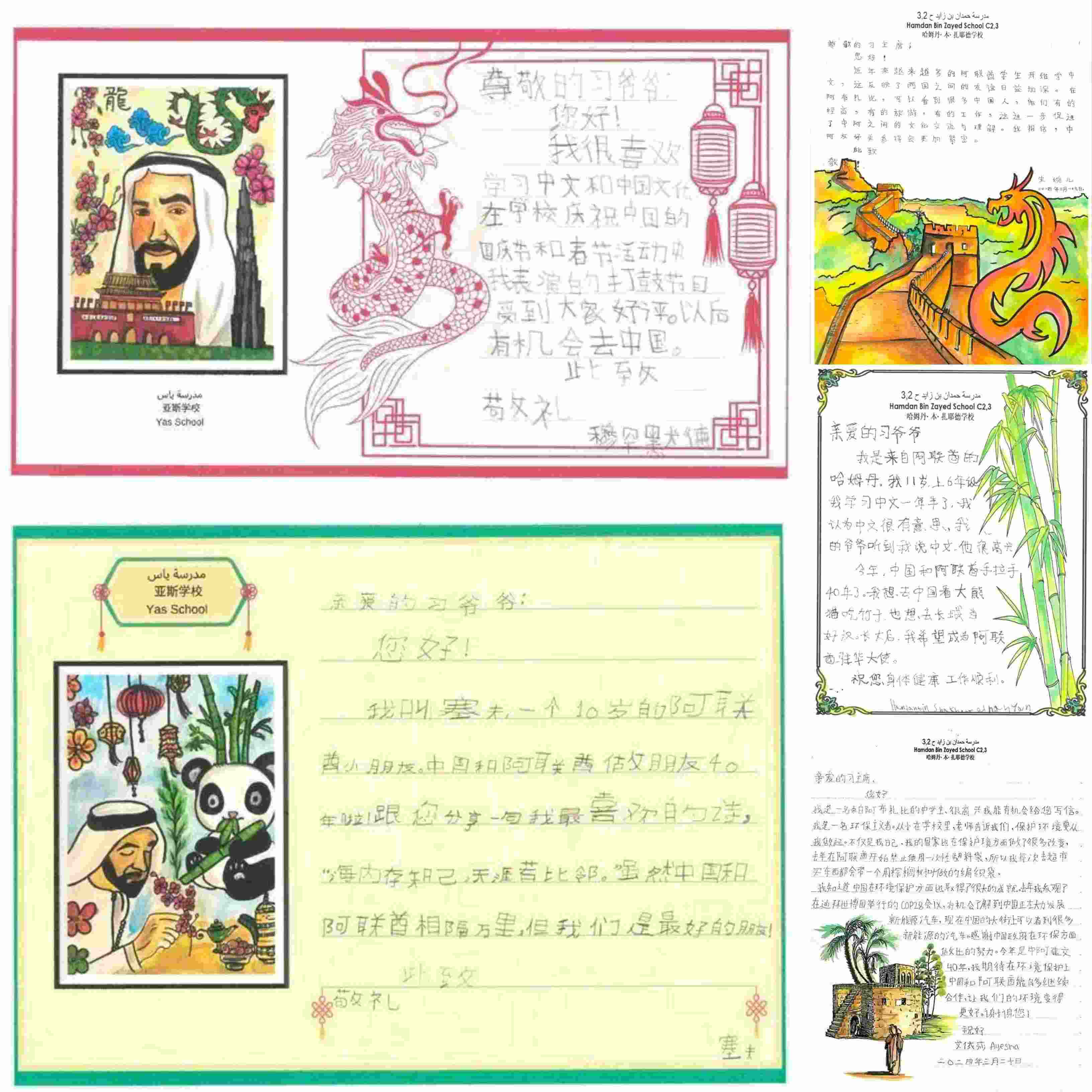△阿聯(lián)酋哈姆丹學(xué)校和亞斯學(xué)校學(xué)生給習(xí)近平主席的信