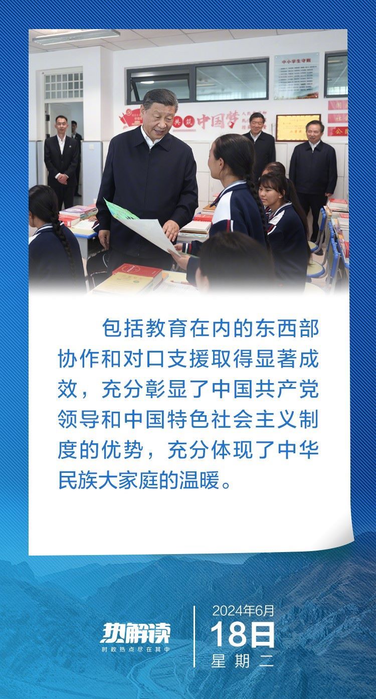 6月18日下午,在青海省考察的習(xí)近平總書(shū)記,首站來(lái)到這所中學(xué)看望老師和同學(xué)們。他先后走進(jìn)食堂、宿舍、教室,關(guān)心學(xué)生們的飲食、住宿、學(xué)習(xí)……了解當(dāng)?shù)厣钊胪七M(jìn)教育工作東西部協(xié)作和對(duì)口支援等情況。