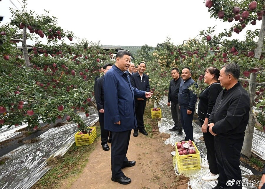 11日上午,習(xí)近平總書記來到甘肅天水市麥積區(qū)南山花牛蘋果基地考察,走進(jìn)果林向現(xiàn)場的果農(nóng)、農(nóng)技人員等詳細(xì)詢問花牛蘋果品質(zhì)特色、種植技術(shù)、市場銷路等,并同鄉(xiāng)親們親切交流。習(xí)近平說,鄉(xiāng)村振興要靠產(chǎn)業(yè),各地要各展其長,走適合自己的振興道路。習(xí)近平勉勵鄉(xiāng)親們再接再厲,把蘋果產(chǎn)業(yè)做得更大更強(qiáng),過上更加幸福的生活。(文字記者:張曉松、朱基釵;攝影記者:鞠鵬、謝環(huán)馳)
